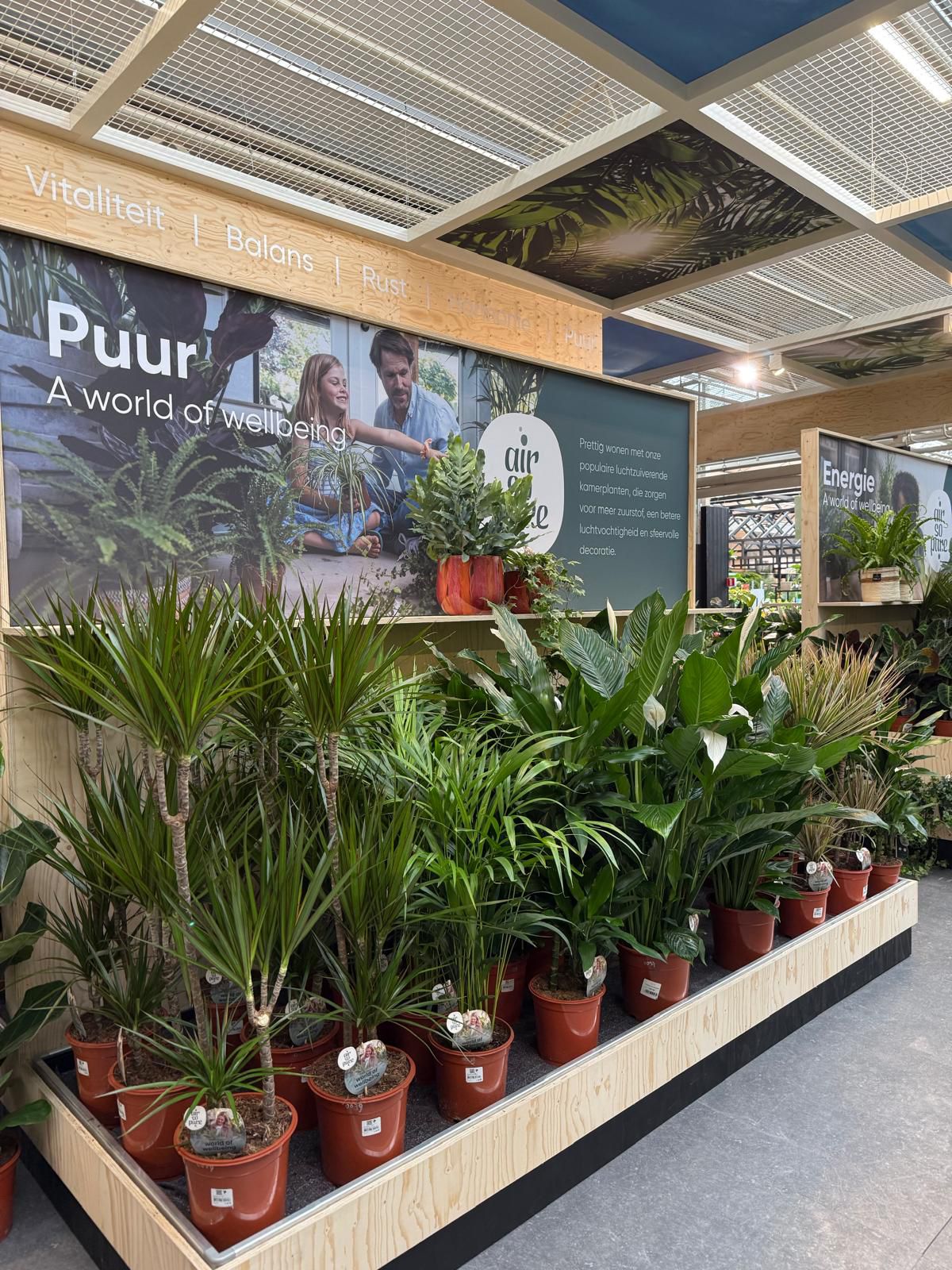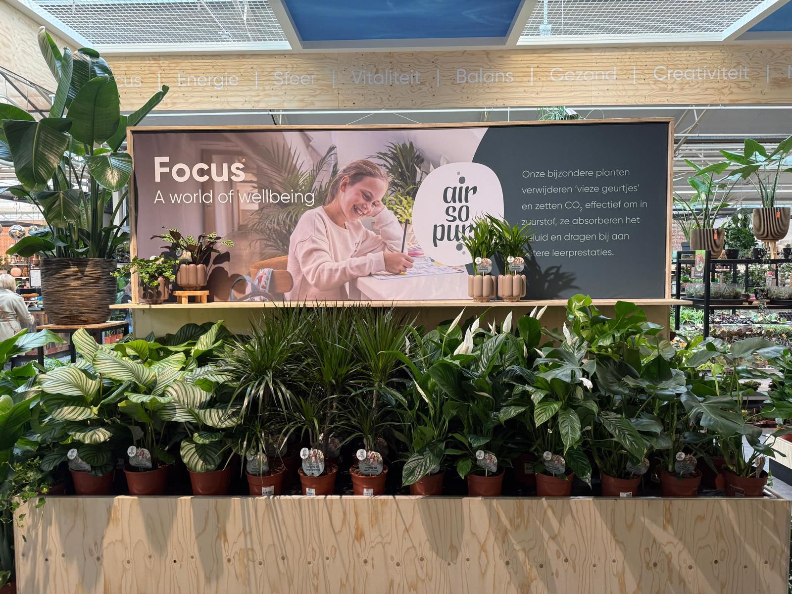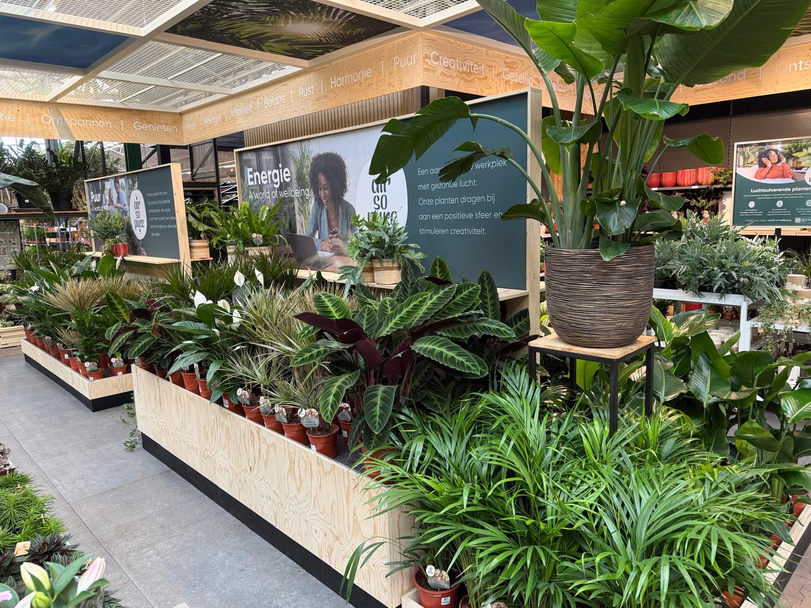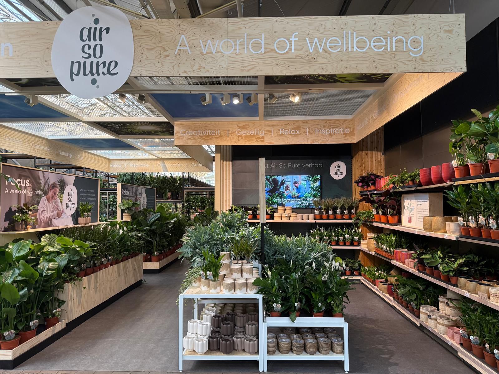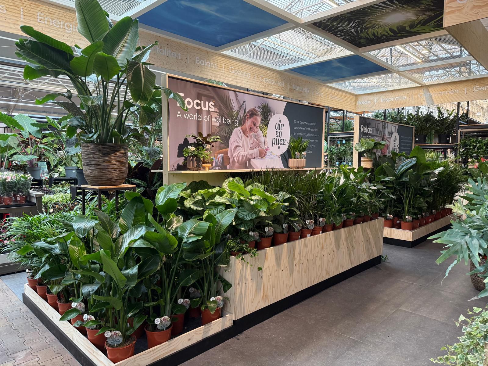 In vier thematische werelden – Puur, Energie, Focus en Relax – krijgen bezoekers heldere uitleg over de luchtzuiverende werking van planten.