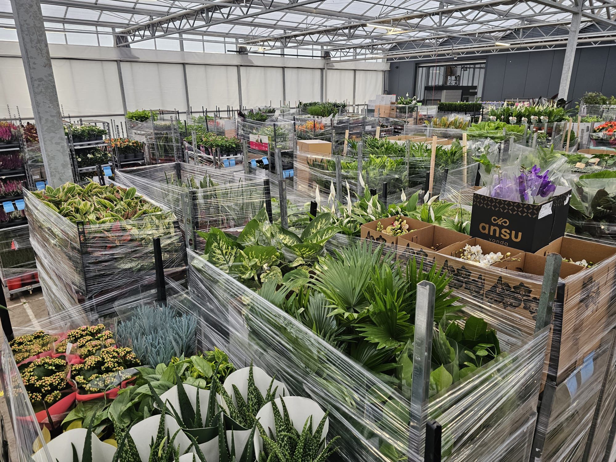 Het actuele en visuele aanbod aan kamer & en tuinplanten staat weer netjes klaar om vanavond en vannacht te worden geladen, zodat alles tijdig kan worden uitgeleverd aan onze tuincentraklanten in binnen- en buitenland.